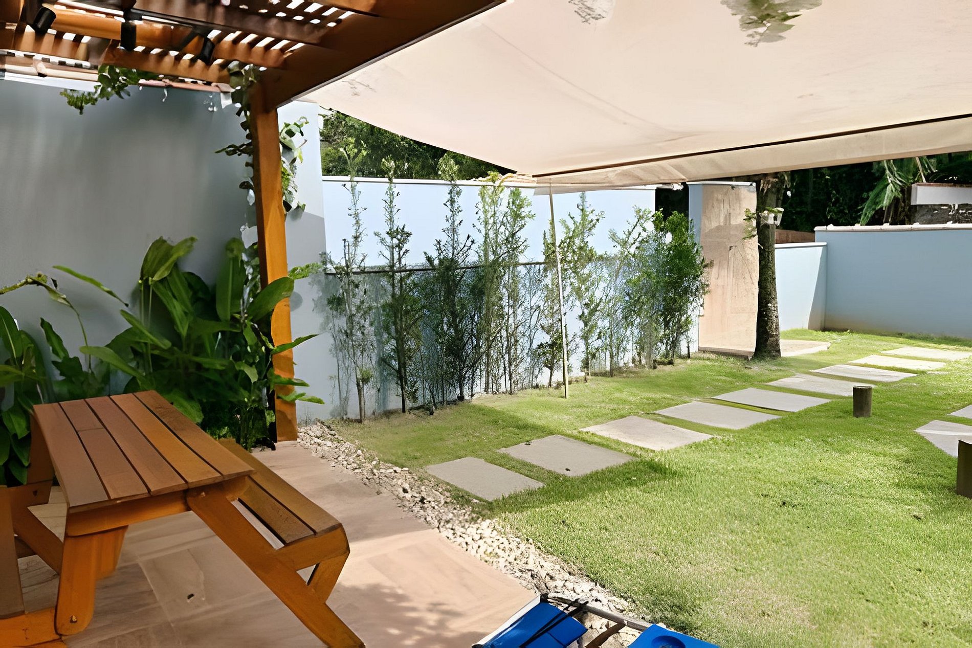 Pets são bem-vindos! O quintal espaçoso e murado, oferecendo liberdade e segurança para o seu animal de estimação aproveitar a estadia com você.